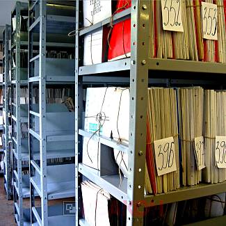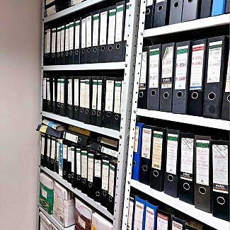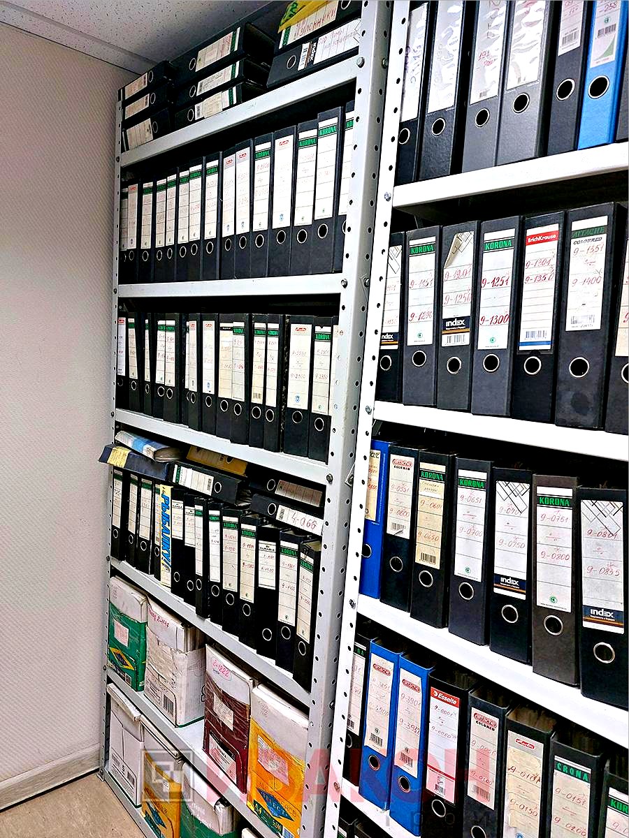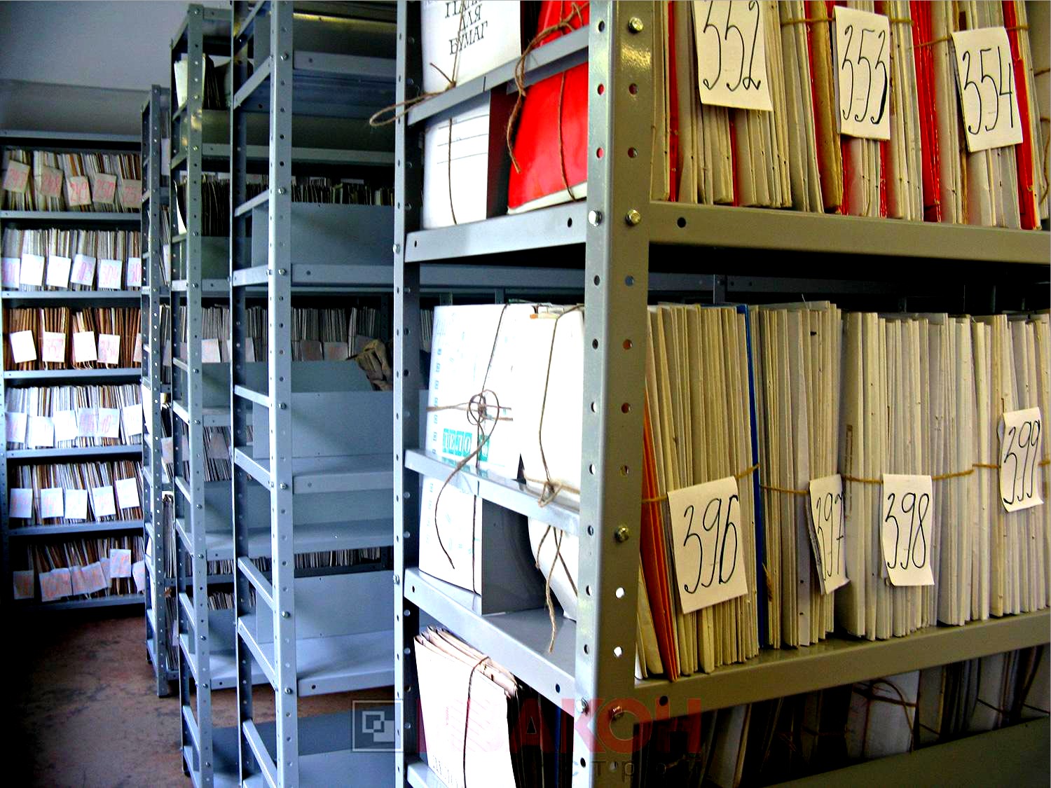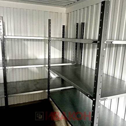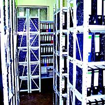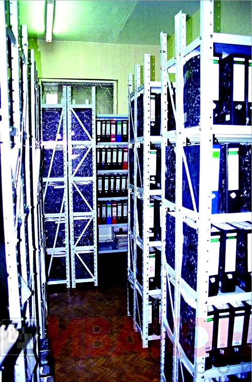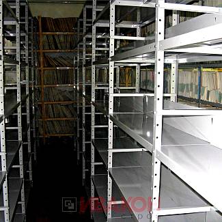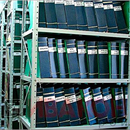 Полка. Элемент из листового металла толщиной 1 мм. Некоторые модели архивных стеллажей имеют полки из сетчатого материала. Он предотвращает застой воздуха, губительно сказывающийся на сохранность бумаги.