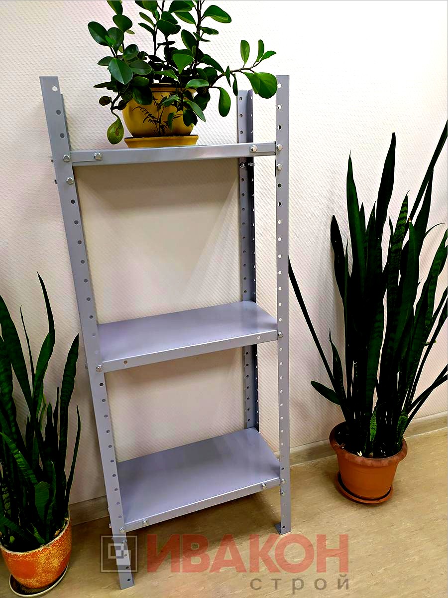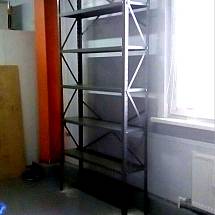 Стойки. Металлический профиль 40x40 мм. Через каждые 50 мм. имеется перфорация для размещения полок. Высота стойки зависит от размеров стеллажа. Мы изготавливаем такие конструкции высотой 2 – 3 метра.
