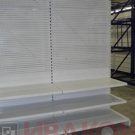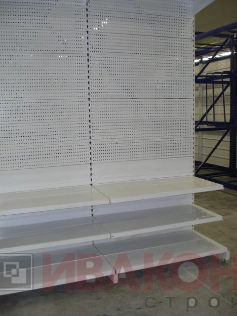 4. Стеллажи торговые металлические с перфорацией – преимуществом таких моделей является универсальность. Отверстия в их стенках предназначены для установки крючков и полок, которые можно размещать на любом уровне.